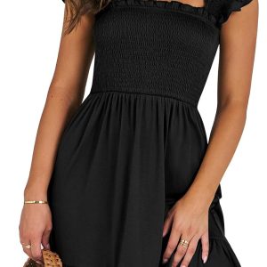 ANRABESS Womens Summer Casual Sleeveless Square Neck Smocked Ruffle Backless Boho Mini Dress 2024 Trendy Short Sundress