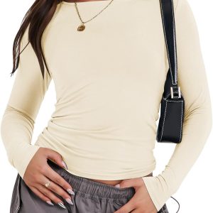 ANRABESS Women’s Long Sleeve Shirts Tight Fitted Going Out Crop Tops Crewneck Basic Tee Y2k Outfits Teens Girls Clothes