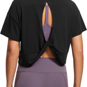 CRZ YOGA Open Back Short Sleeve Crop Top for Women Loose Athletic Yoga Workout Tops Casual Cropped Tee Shirts