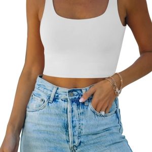 REORIA Women’s Sexy Square Neck Double Lined Seamless Sleeveless Cropped Tank Yoga Crop Basic Tops