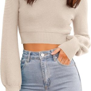ZESICA Women’s Fall Mock Neck Cropped Sweater 2024 Long Sleeve Soft Ribbed Knit Pullover Jumper Tops