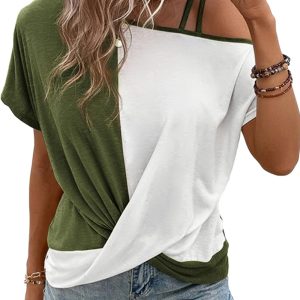 Dokotoo T Shirts for Women Twist Knot Color Block Loose Fit Cold Shoulder Tops for Women Fashion 2024