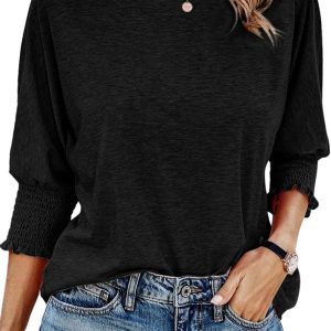 Dokotoo Women’s 2024 Fashion Tops 3/4 Sleeve T-Shirts Cute Crewneck Basic Business Tees Blouses