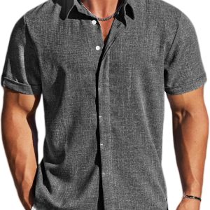COOFANDY Men’s Knit Shirts Short Sleeve Button Down Polo Shirt Fashion Casual Summer Beach Shirts