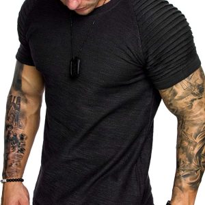 COOFANDY Men’s Muscle T-Shirt Pleated Raglan Sleeve Bodybuilding Gym Tee Short Sleeve Fashion Workout Shirts Hipster Shirt