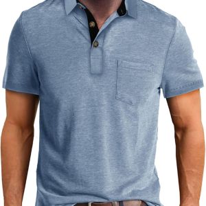 Men’s Fashion Casual Polo Shirts Cotton Slim Fit Button Short Sleeve Basic Golf Work Tops