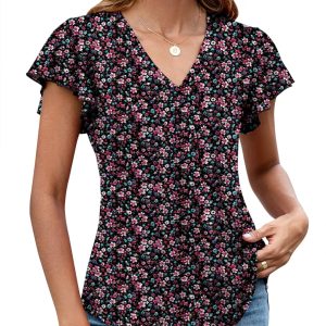 LOMON Womens Tops Dressy Casual Summer Flutter Sleeve T-Shirts Trendy Ruffle Short Sleeve Loose V-Neck Tunic Tops