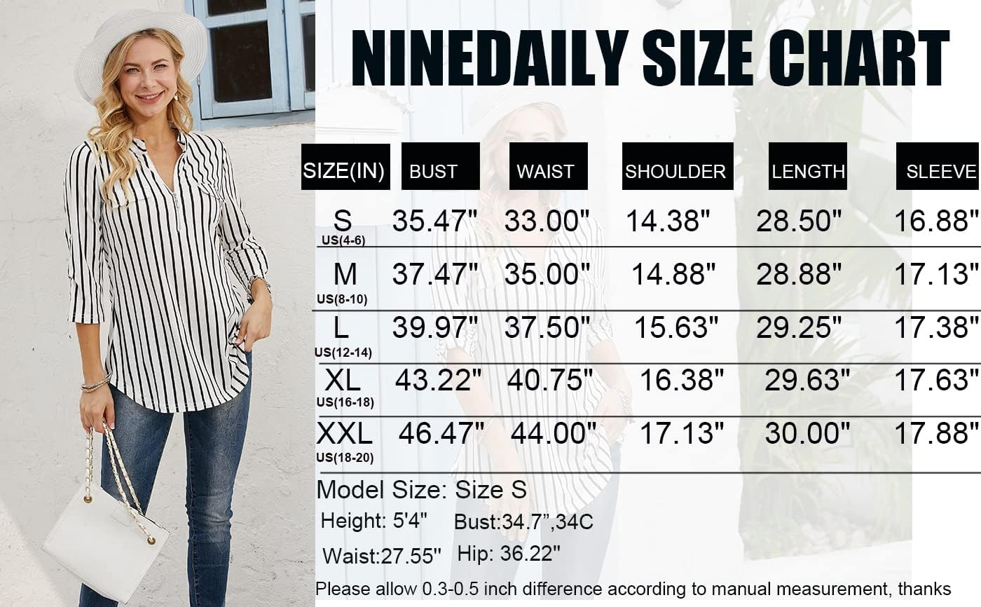 Ninedaily Womens Tops 2024 Fashion Holiday Dressy Outfits 3/4 Sleeve Shirts